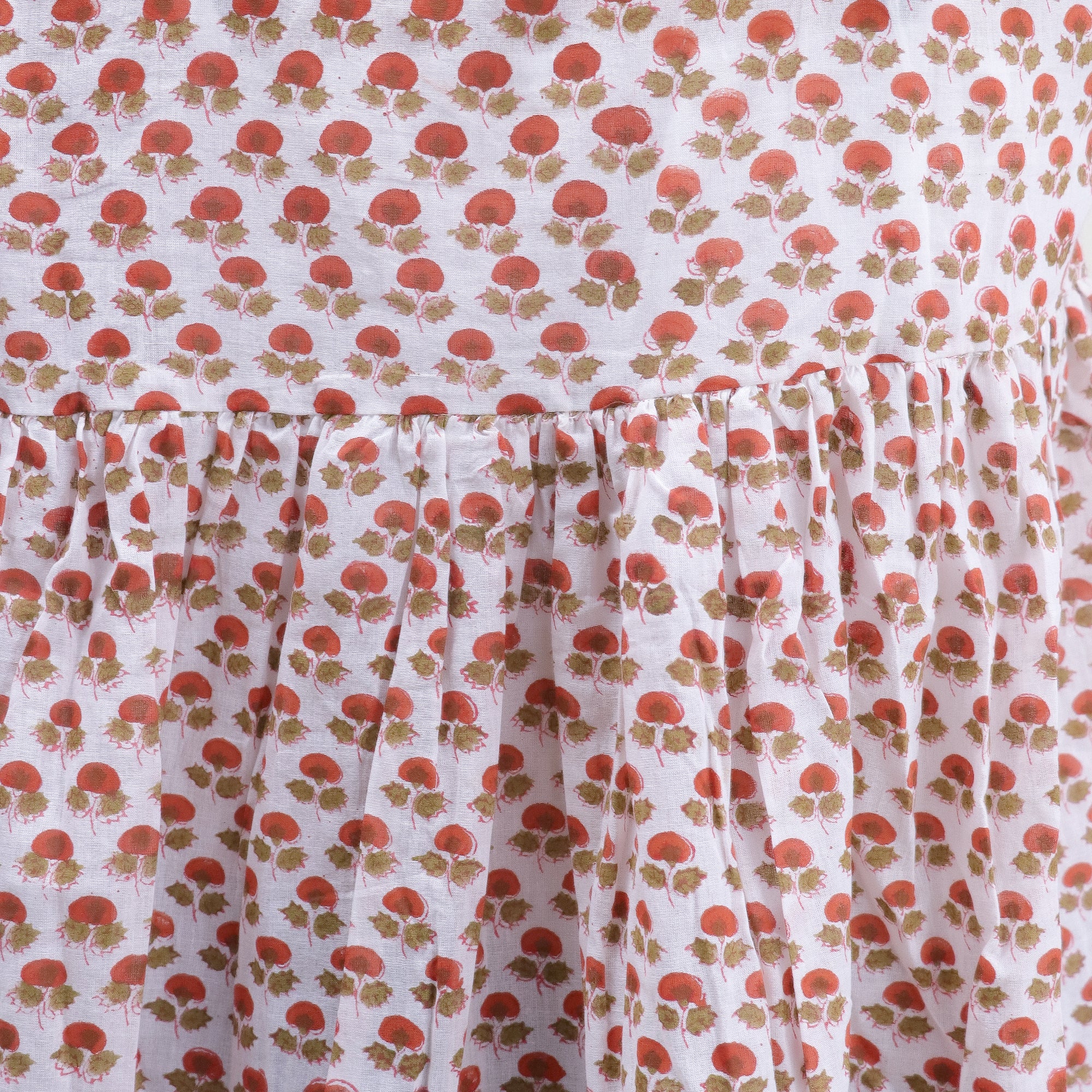 - Print: Hand block printed floral and abstract motifs